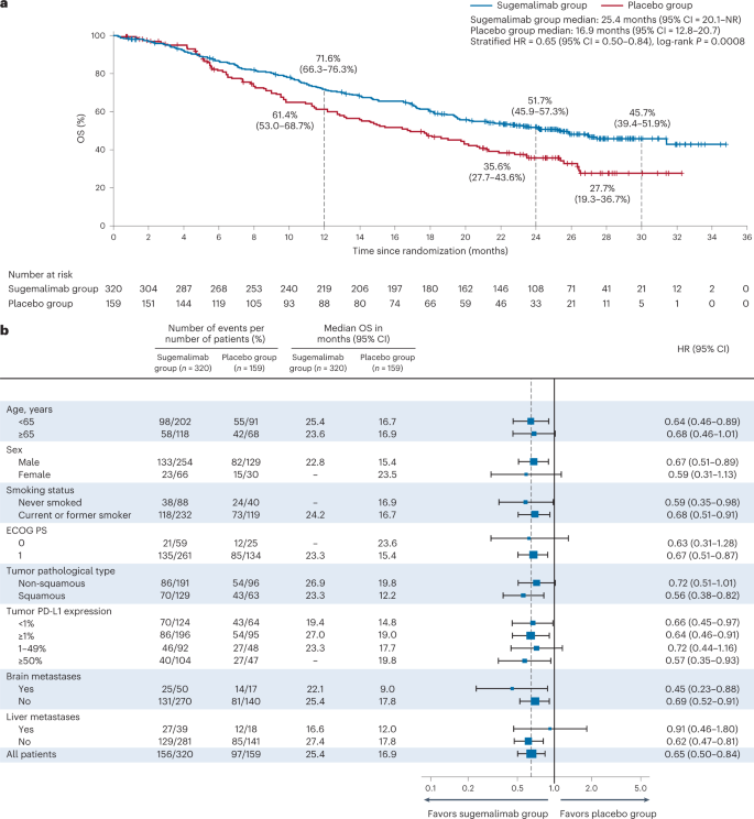 Interim Survival Analysis Of The Randomized Phase Iii Gemstone 302 Trial Sugemalimab Or Placebo Plus Chemotherapy As First Line Treatment For Metastatic Nsclc Nature Cancer